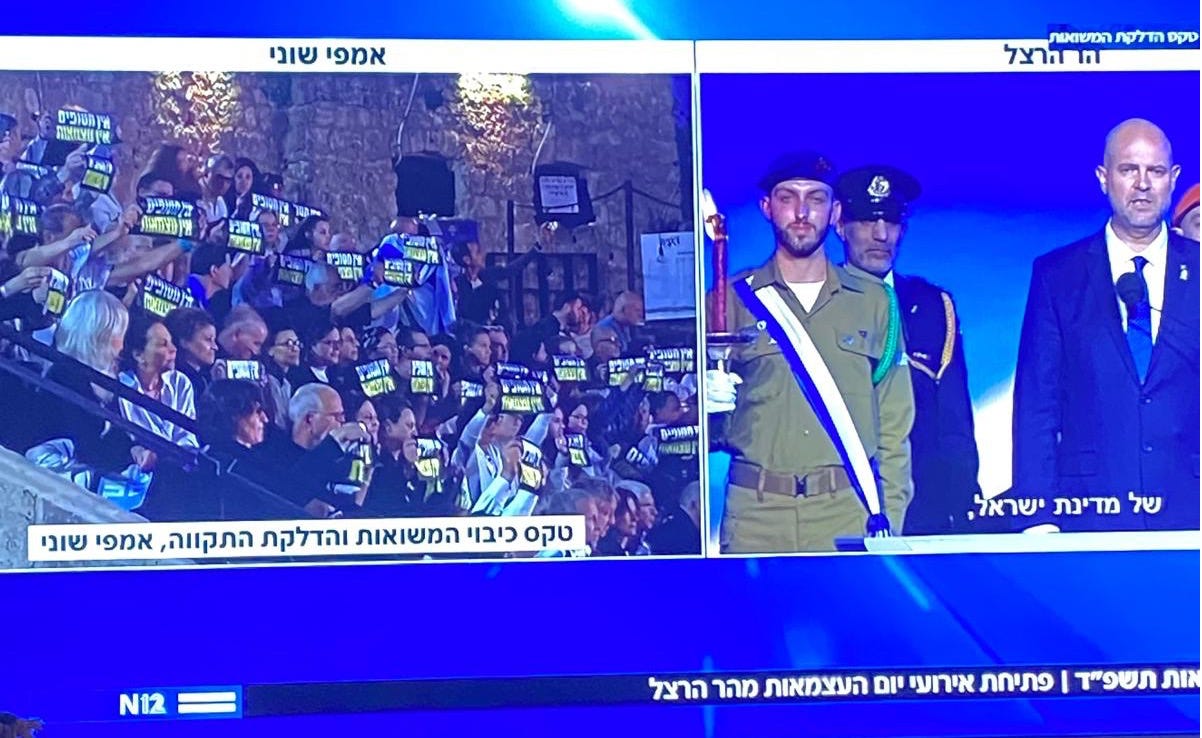 As Israeli TV broadcast the national Yom Ha-Atzma’ut Ceremony on Monday night, there was a sight quite unusual for the showing of a national ceremony: