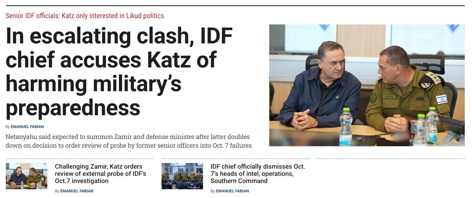 So why did Katz take aim at Zamir? Because, well, the IDF publicly and proudly embracing an outside investigative committee doesn’t fit that well with the government’s continuing refusal to appoint a National Commission of Inquiry. Katz, widely considered a Netanyahu yes-man, took aim at Zamir in order to make the issue anything but the idea of unbiased investigation, resignations and firings.