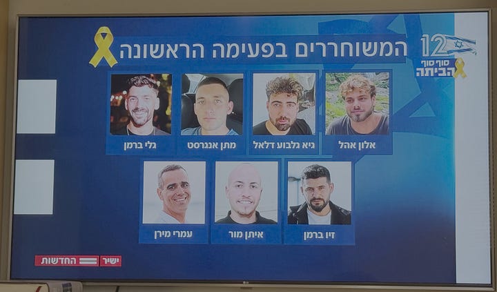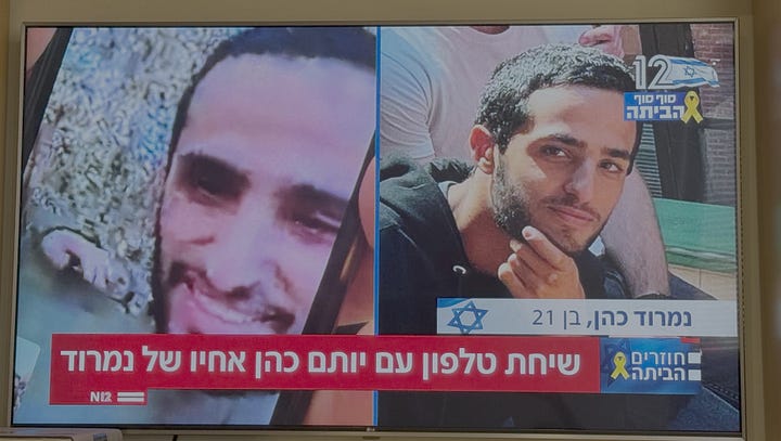 A number of people I spoke to said that those first images reminded them of images at Yad Va-shem. Eventually, though, the hostages looked better than we’d feared, once we saw them on better cameras. Every one walked out on his own.