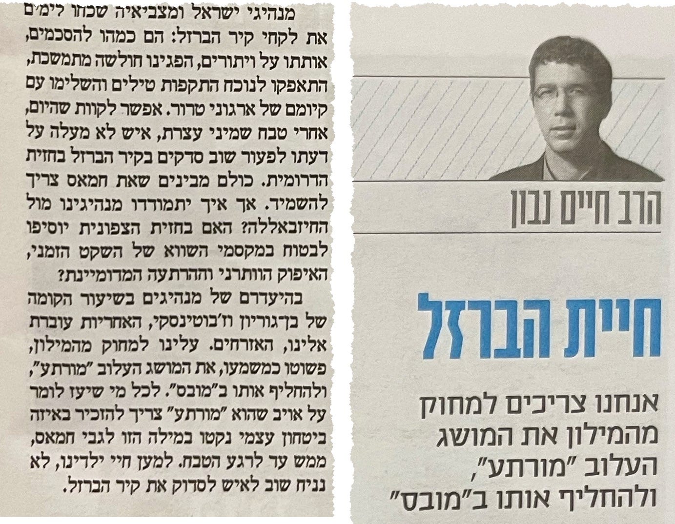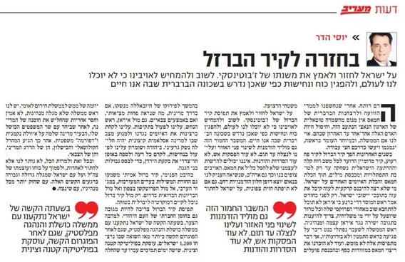 Now, a few instances of the Iron Wall’s long shadow in this week’s Israeli press: