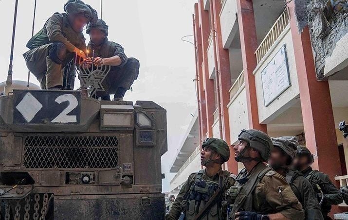 Not surprisingly, much of the focus of the news this weekend was on the war, with a Hanukkah twist. There were stories of “miracles” of those who were saved, “heroes” who did extraordinary things on October 7 and beyond, and even a new stanza to Maoz Tzur about the Gaza War. The photo above, from the IDF Spokesman’s office, is of Israeli troops lighting Hanukkah candles on the third day of Hanukkah, somewhere inside Gaza. Zoom in if you need to.