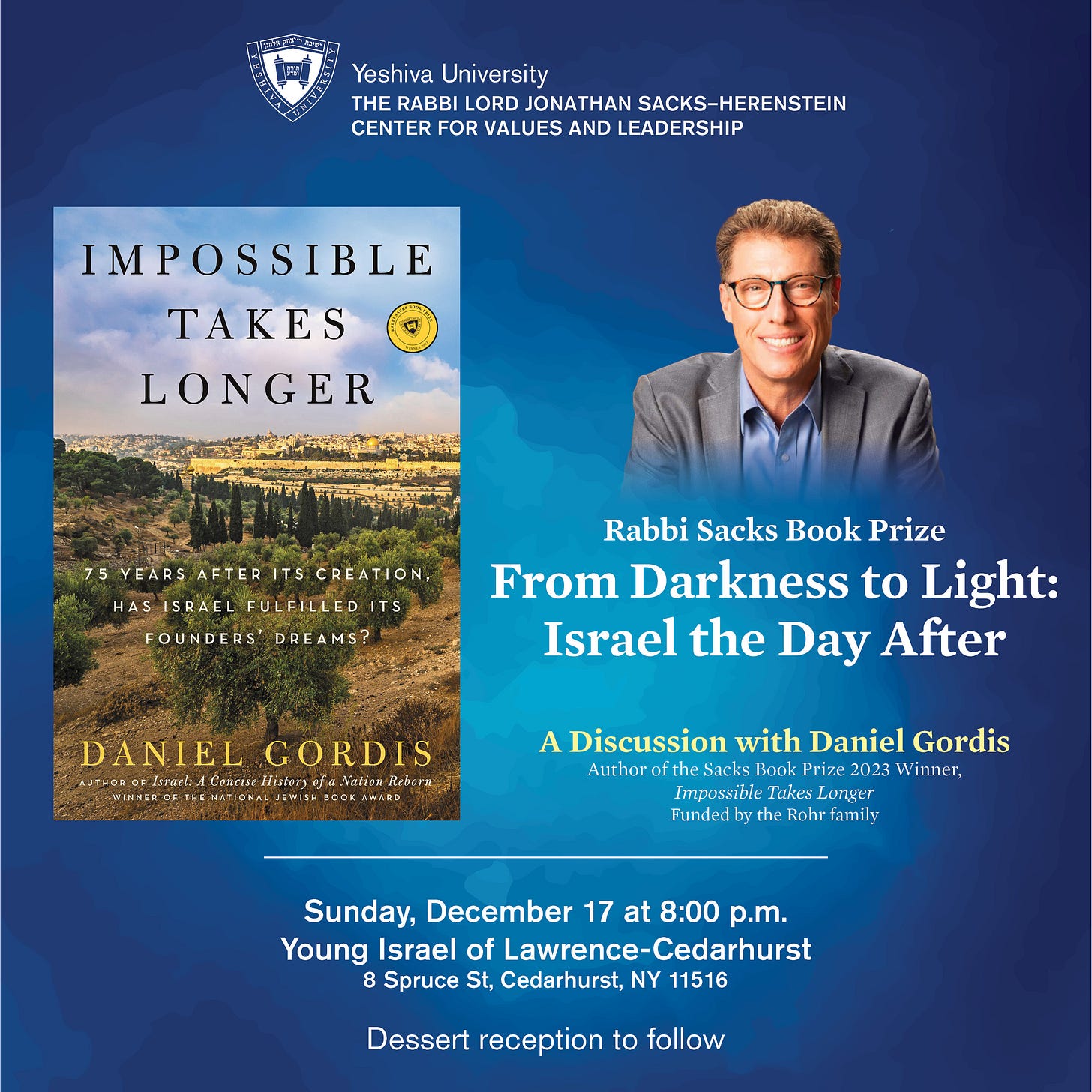Next week, I’ll be in New York for two events in conjunction with The Rabbi Lord Jonathan Sacks-Herenstein Center for Values and Leadership of Yeshiva University.