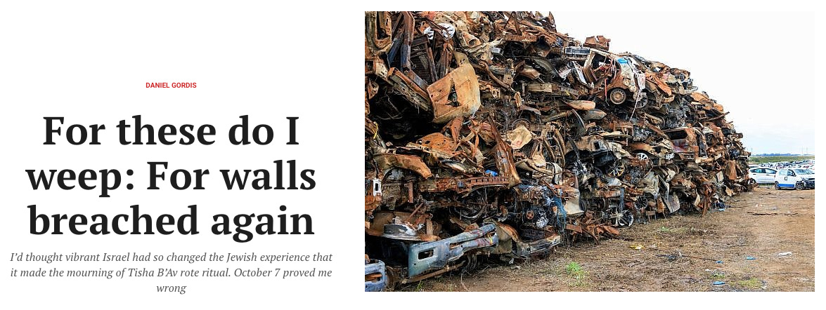 The first part of the issue is reposted above—to read the full essay, please visit the Times of Israel at “For These Do I Weep.”