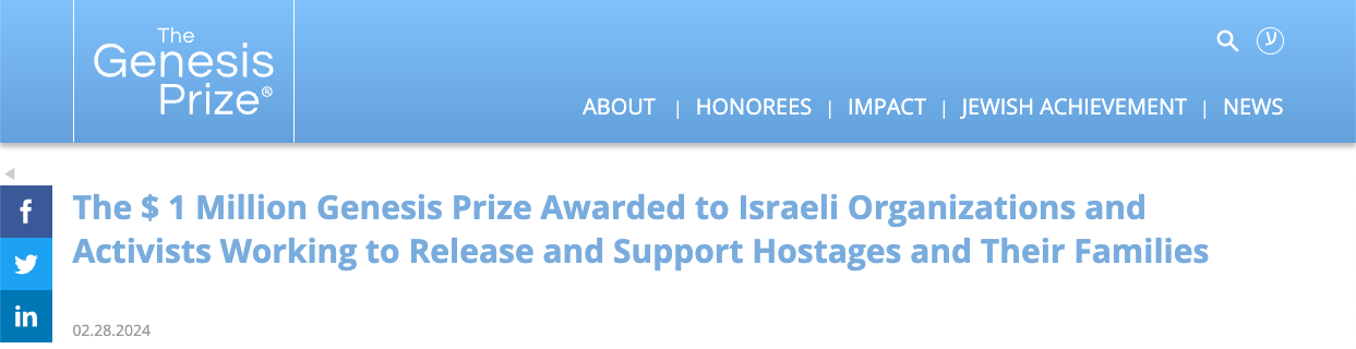 And for some good news on the hostages front, this just in from the Genesis Prize.