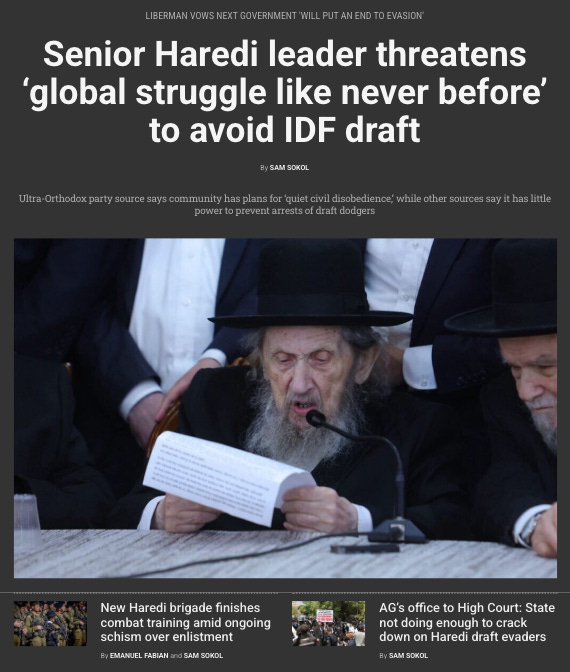 Those sorts of headlines do make non-Hebrew press, but what is much less accessible outside Israel is the social media firestorm now being unleashed by those who have simply had it with the government’s caving in to the Haredim, as their own husbands have been called up again, sometimes for their fifth tour of duty in this war.