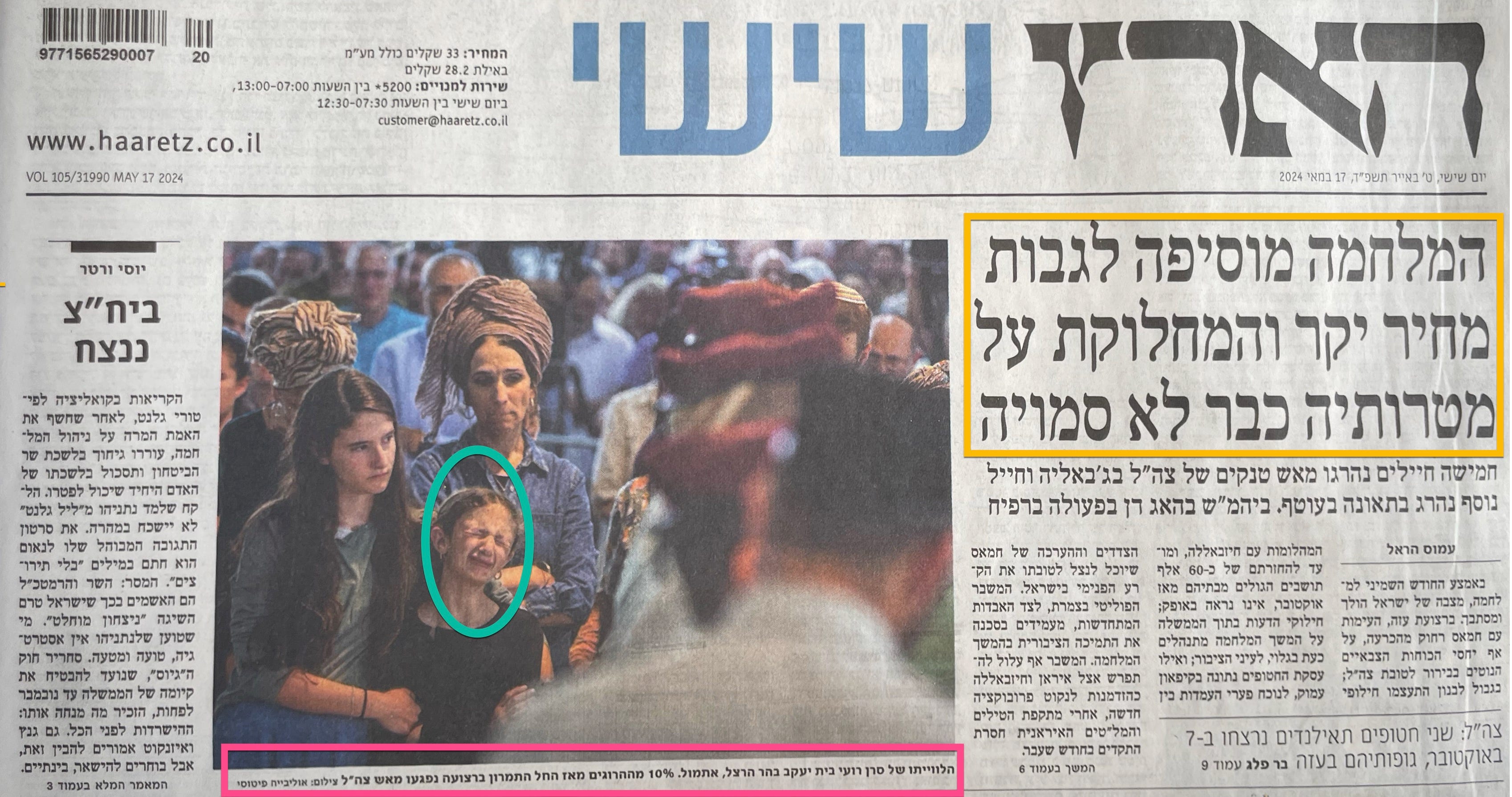 We begin with Haaretz, Israel’s left-leaning, hi-brow paper.