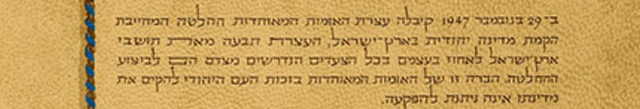 On the 29th November, 1947, the United Nations General Assembly passed a resolution calling for the establishment of a Jewish State in Eretz-Israel; the General Assembly required the inhabitants of Eretz-Israel to take such steps as were necessary on their part for the implementation of that resolution. This recognition by the United Nations of the right of the Jewish people to establish their State is irrevocable.