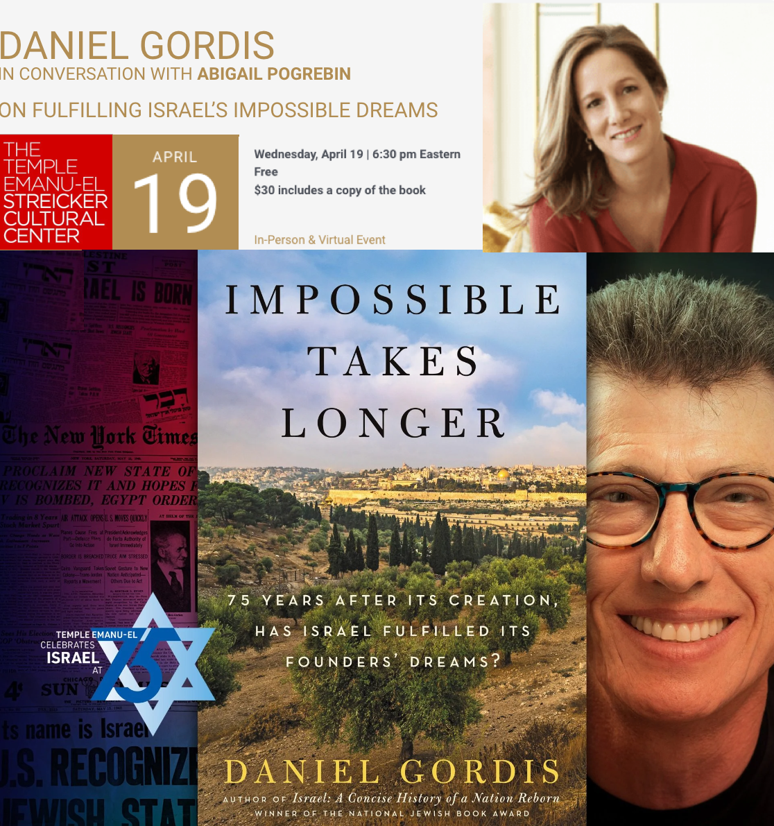On April 19th, I’ll be in dialogue with Abigail Pogrebin at Temple Emanuel’s Streicker Cultural Center, speaking about my book, Impossible Takes Longer, that will have come out the week before. Information and registration on the Streicker Center website, here.