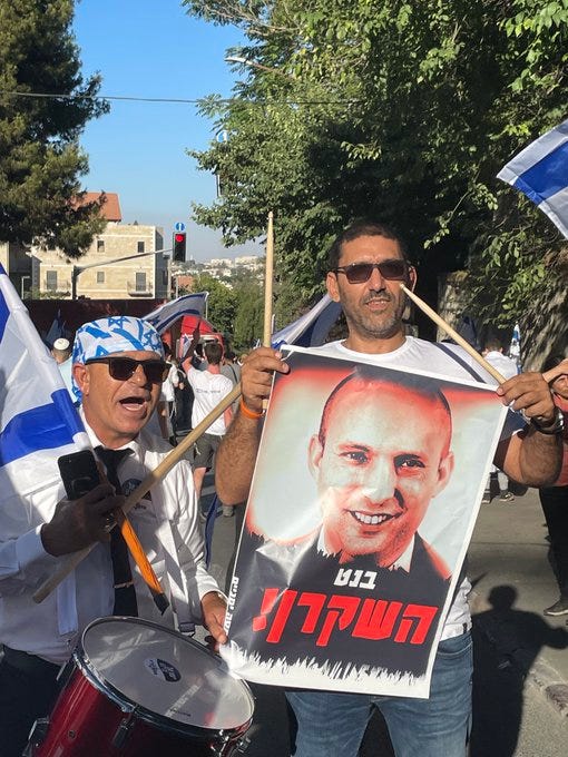 But the accusations of treason are hardly over. At yesterday’s Flag Parade in Jerusalem, which mercifully passed without major incident, one could see more than a few protesters holding up signs with the words “Bennett, shakran”—Bennett, The Liar. That, of course, is precisely what was said about Rabin, who was also, like Bennett, called a traitor.