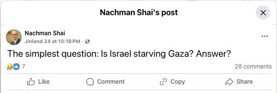 That is precisely what made his recent Facebook post (Google-translated below) so telling. Nachman Shai appears to acknowledge—he just doesn’t know. (For careful readers who note the date that Google assigns the post, I confess that I don’t know what “Jinland” is. In Hebrew, it reads “July”.)