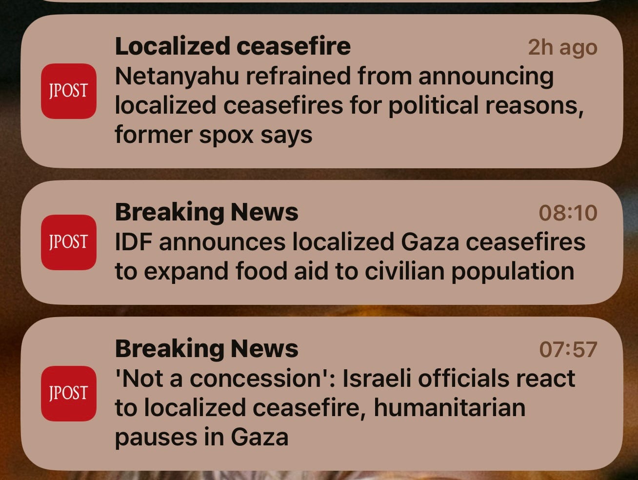 Now, the question is, “what’s behind all this?” The main news coming from Gaza today (in addition to the horrifying deaths of two more soldiers) is about the “humanitarian pause” in fighting that the IDF has suddenly imposed. Who insisted on that? Why was it only agreed to now? Is it a long term plan or something to mollify someone?