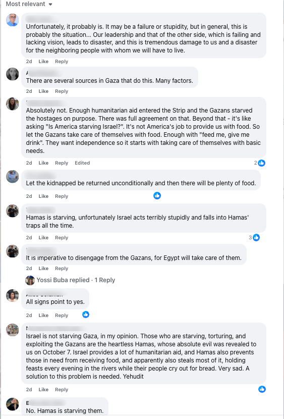 To give a sense of the multiplicity of views that make up Israeli life, here are just a few of the responses, again Google-translated (the posts are all public, but I’m blurring the names just so we think more about what’s being said than about who said it).