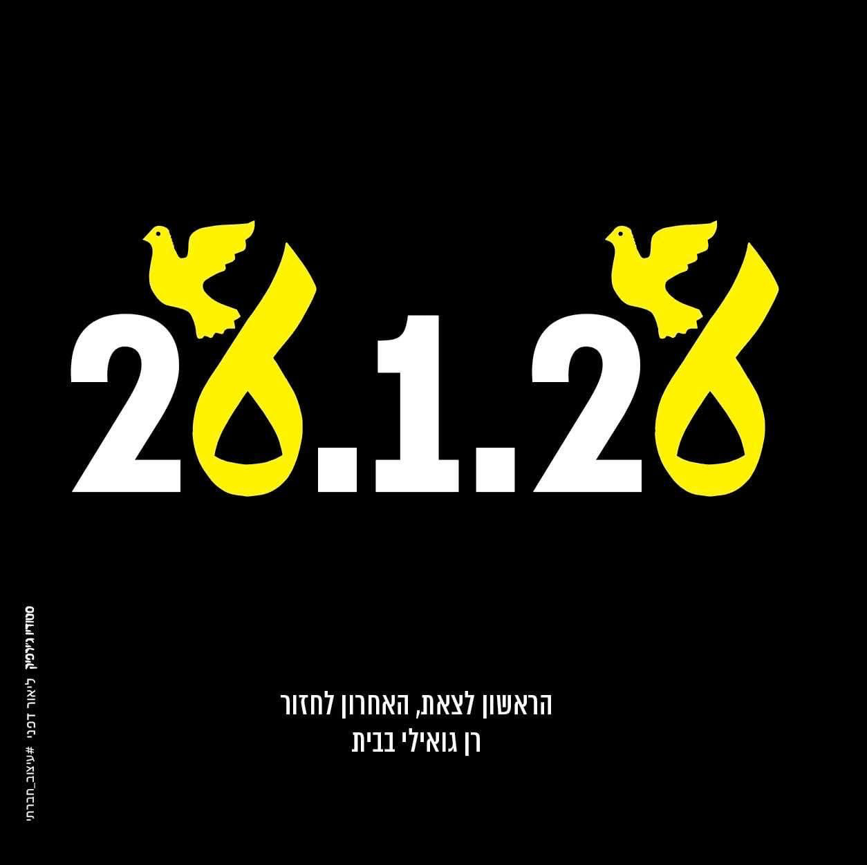 It reads, obviously, 26.1.26 (January 26 2026), with the yellow hostage ribbon having morphed, at least in part, into a dove.