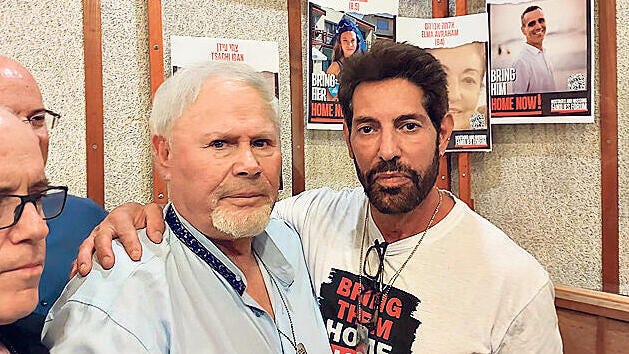 The members of Hegevatron, visible in the video above (shared all over on Israeli social media, including here by Nadav Eyal, and written about in the press) in the first row wearing the blue shirts, agreed to perform it with him, along with families of the hostages (yellow ribbons are the symbol of the #bringthemhome movement).