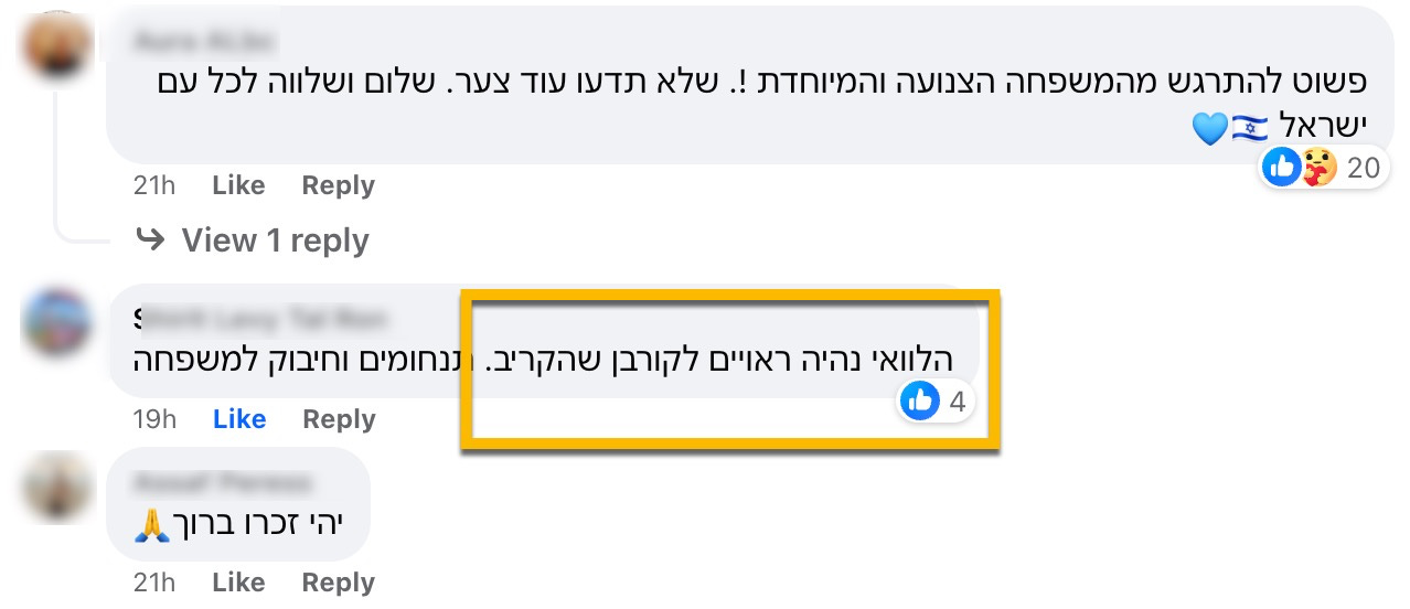 Among the many, many comments in response to the Hanoch Daum / Miriam Haber post above, was the one below, in the yellow rectangle.