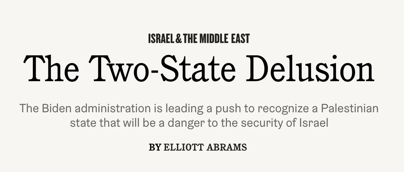 From time to time, when we find something of interest (whether we agree with it or not, in whole or in part), we share links to enrich our collective larger conversation. I thought that the following piece in Tablet Magazine by Elliot Abrams was very worth passing on. No matter where one stands on the two-state-solution, and especially if one is instinctively in favor, one needs to engage the questions that he raises.