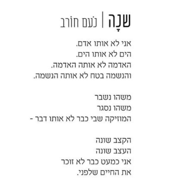 Noam Chorev, a hugely popular Israeli songwriter who’s written some of the most popular songs for Israel’s leading musicians, wrote a poem that was just posted on Facebook. He called it “A Year.”