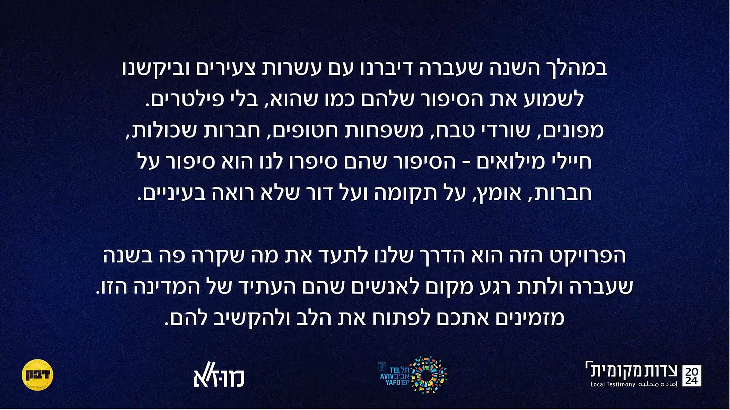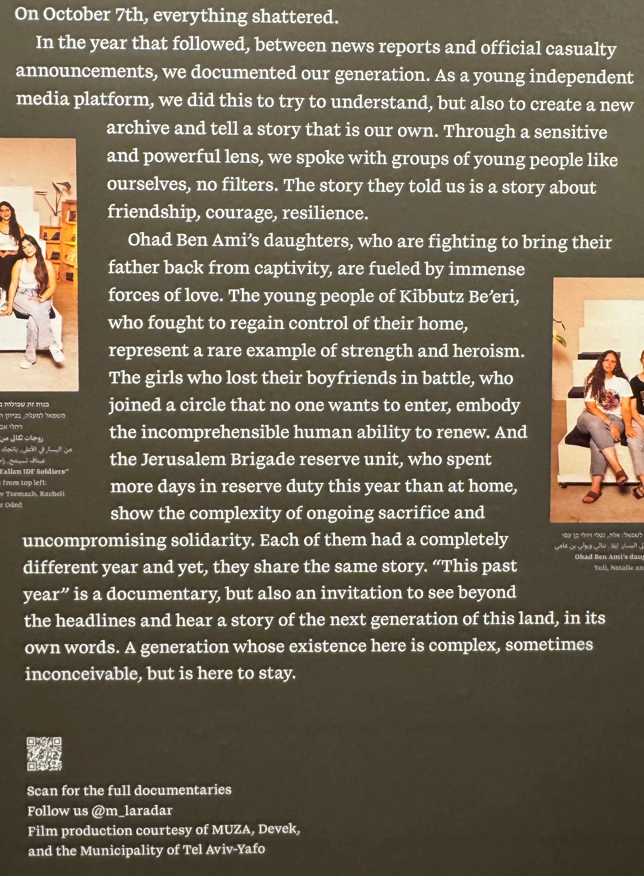 Over the past year, we spoke with dozens of young people and asked to hear their stories as they are, without filters. Evacuees, survivors of the massacre, bereaved families, widows, reserve soldiers – the stories they told us are stories of friendship, courage, resilience, and of a generation that sees without illusions.