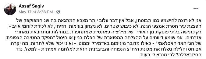 What the IDF could not do: But “getting the job done” is not as simple as it sounds. It is lost on very few Israelis that after almost two weeks of heavy bombardment by one of the world’s most powerful air forces, Hamas was still firing plenty of rockets. Here’s a Facebook post from Assaf Sagiv, a highly respected, right-of-center Israeli public intellectual, who I assure you harbors little sympathy for Gaza or Hamas: