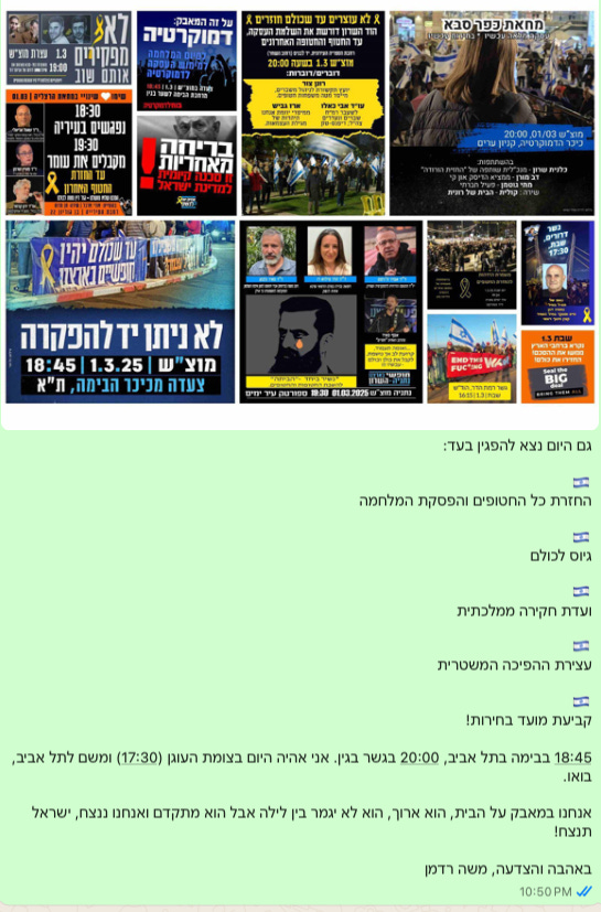 Here’s one sample post, from Moshe Radman, one of the coordinators of the anti-judicial-reform protests, who continues to be a major player in a number of issues:
