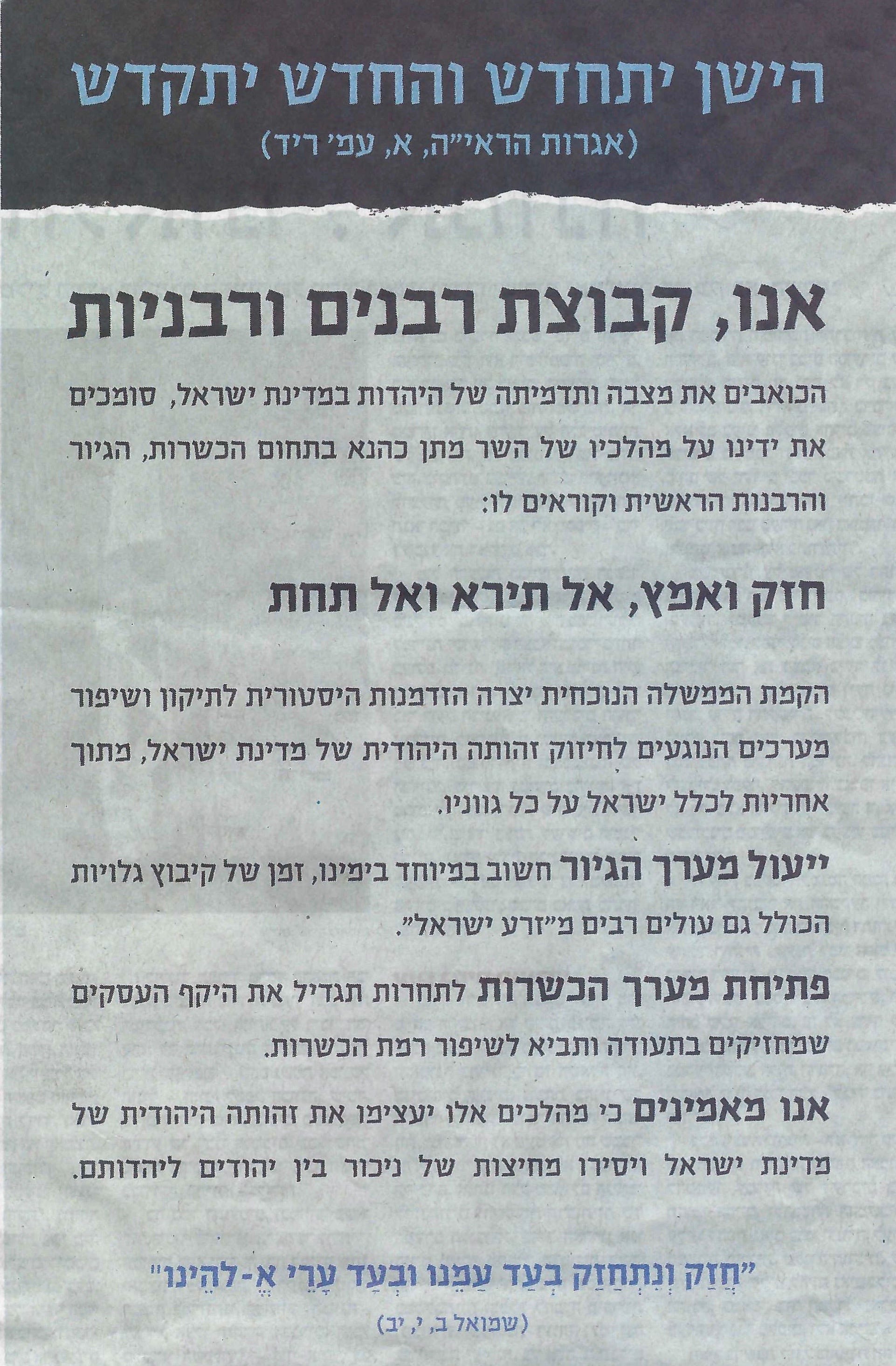 while others, even within the Orthodox establishment are applauding Bennett and Kahana, urging them not to back down.