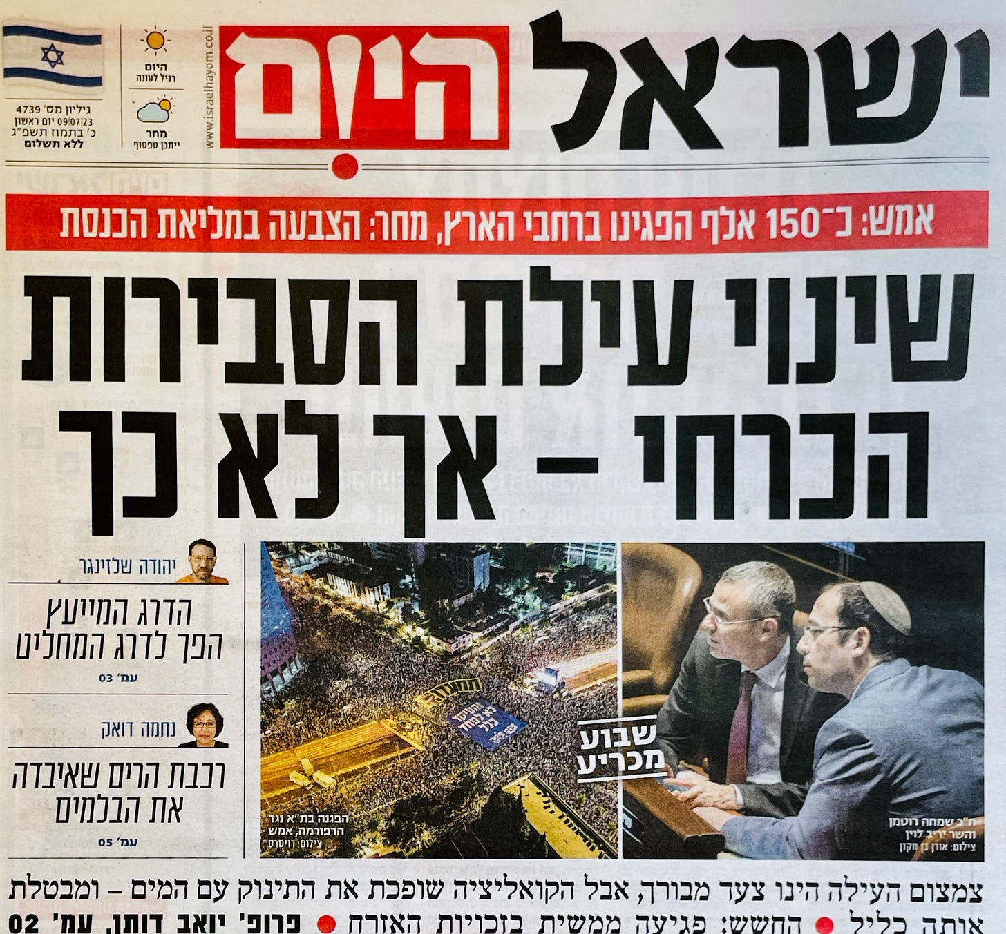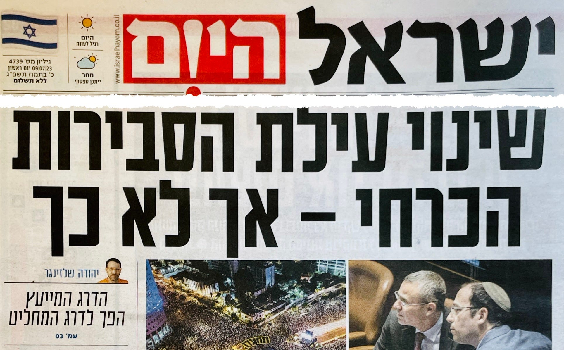 Nadav Eyal, “A constitutive moment? Perhaps,” in Yediot Ahronot, HaMusaf LeShabbat, July 7, 2023, pp. 4-5. Quote on page 5.