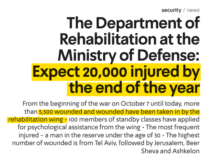 To give a sense of the magnitude of the number of seriously wounded, consider this screenshot from a recent article in Yisrael Hayom, translated by Google Translate.
