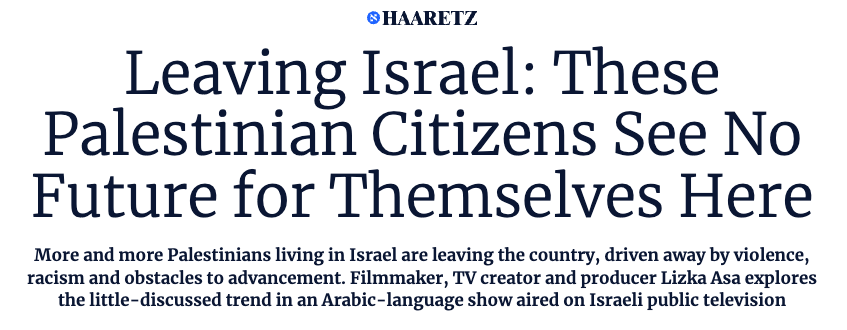 Ironically, the following article in Haaretz just came out describing the other side of the same coin—Israeli Arabs who are leaving, though largely for different reasons.