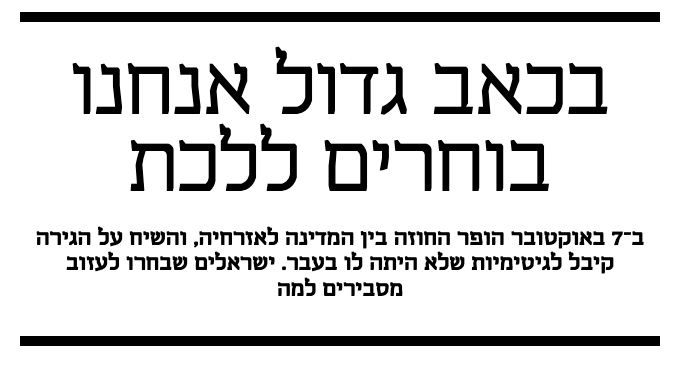 During the last week we spoke with about 20 Israeli men and women, of different ages, from different places in Israel, from different fields of work, leftists and rightists. They all described to us how, in the face of the trauma, the feeling of abandonment by the state and the fear that settled in their hearts, they decided to try to build their home in another country. They revealed the heartbreak involved in this separation, but emphasized that they voluntarily chose to replace the uncertainty inherent in the ongoing war here with the uncertainty involved in acclimating to a new country.